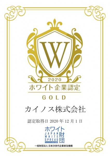 当社は、一般財団法人日本次世代企業普及機構(通称:ホワイト財団)が運営する、「ホワイト企業認定GOLD」を取得いたしました。