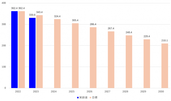 2030年までに2022年度比で排出量を42%削減